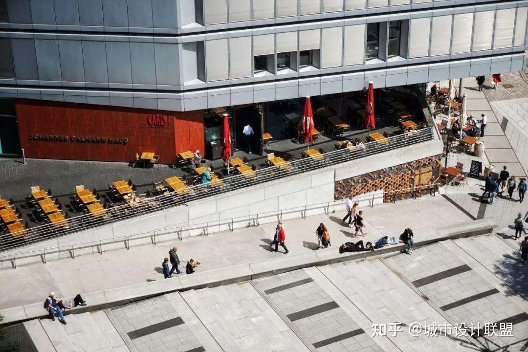 ▨ 规划布局HafenCity实行土地利用混合的发展模式,强调注重城市居住功能的同时,将在零售、教育、文化、娱乐和旅游业中创造新的就业机会。 值得注意的是,HafenCity是一个以商业为主要功能的区域。从大型跨国公司到小型本地企业,各种规模的企业占据着约40%的基地面积,而零售和餐厅往往位于建筑底层。