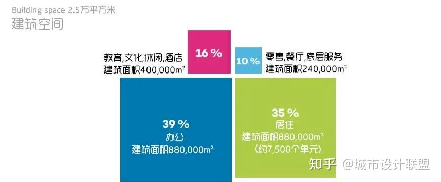 △ HafenCity建筑空间面积统计(© Mocy改绘自 http://www. hafencity.com )在HafenCity西部,Am Sandtorkai / Dalmannkai有大片的公共空间和长廊,而附近的Am Amtortorpark / Grasbrook则强调宜人的环境,坐拥两个精心设计过的公园。Strandkai是临河生活和工作的主要地点。Uberseequartier是Hafencity的核心地带,兼具商业、居住和休闲功能。Elbtorquartier位于运河中心区,因大学和海事博物馆的存在而被称为Hafencity的“知识区”。Am Lohsepark是一个住宅区,地处Hafencity面积最大的绿地周边。位于最北部的Brooktorkai / Ericus是为整个Hafencity服务的仓储区。与西部和中部相比,东部的三个街区规模更大,但与现有城市的融合较少。每个社区都有自己的发展方向:Baakenhafen是生活休闲场所,Oberhafen是文化创意产业集聚场所,Elbbrücken则是大都市区的商业和住房集中场所。