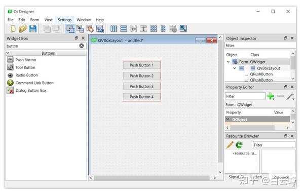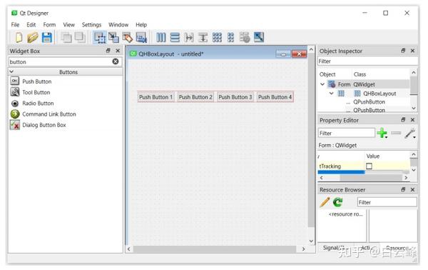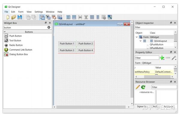 让我们使用Qt Designer模块来设计一些按钮布局。