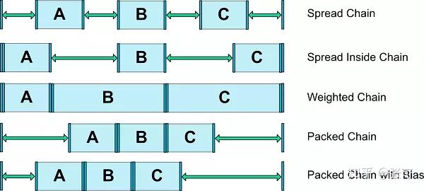 - CHAIN_SPREAD_INSIDE:类似 CHAIN_SPREAD,但两边的元素会贴着父布局;