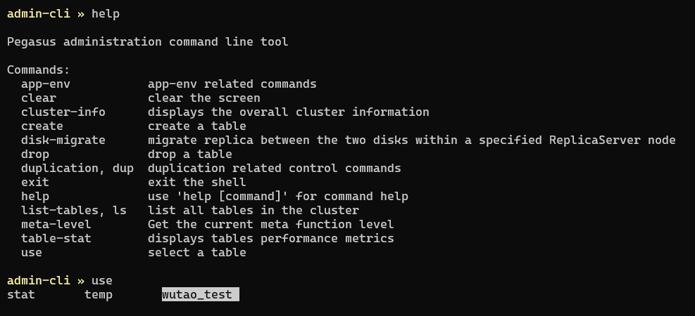 Pegasus 基于 grumble 开发了 admin-cli 命令行管理工具。后续我们应该还是会着重考虑 webui。