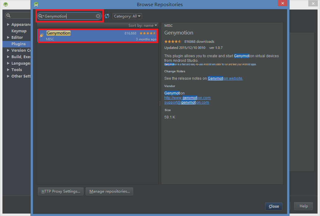 5. 将Genymotion加入 Android Studio