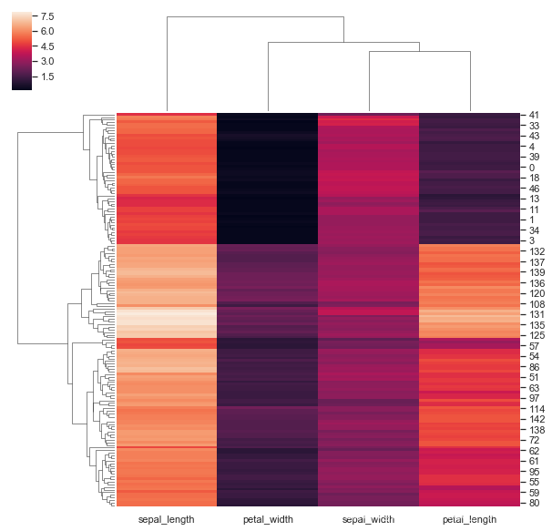 clustermap() 可以将矩阵数据集绘制为层次聚类热图。具体参数如下: