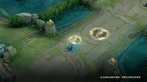 而二技能使用后则会召唤出一片具有水墨风格的水潭,与一技能相同,施法后也会有两条锦鲤环抱着盘旋而出,并随着传送时间的结束而一并飞向泉水。值得注意,在水潭底部也会有一些诗句浮现。