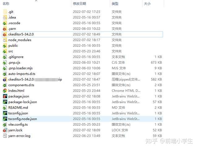 第六步 下载完成后,可以得到一个ckeditor5-34.2.0-xxxx.zip的压缩包,然后直接将压缩包剪切到vue3根目录下并解压,修改解压后目录为ckeditor5-34.2.0,目录结构如下