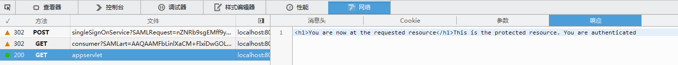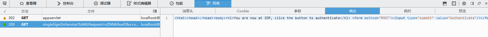 可以看到访问了idp的地址,并且idp返回登录认证的页面