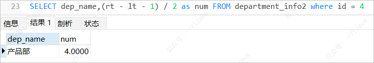 -- 由于数量包含了自身,由于统计的是子节点的数量,所以这里需要-1将自己去掉