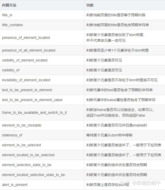 selenium提供了一些内置的用于显示等待的方法,位于expected_conditions类中:
