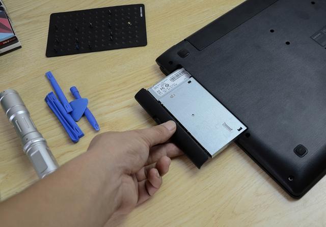 拆光驱,现在光驱用的不多了,但是因为出于刻录光盘的需求,我特地选的这款带光驱的,后面把光驱拆下来之后用易驱线做成移动光驱用。