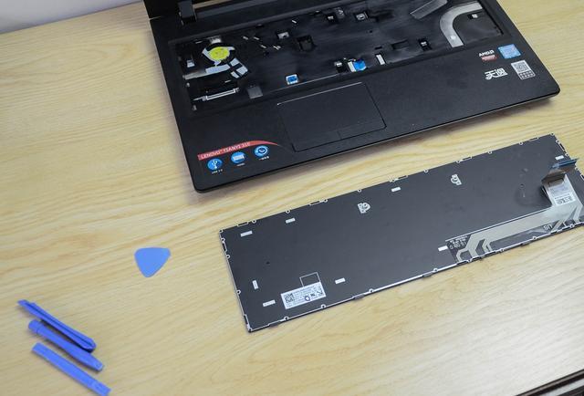 键盘松动之后接着用撬棒把键盘的排线分离,排线在左下角,拆键盘时要注意别有太大的动作幅度。