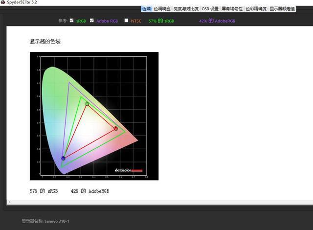 先来看下色域,57%的sRGB,42%的Adobe RGB,很感人哈,毕竟是笔记本,毕竟价格在这。