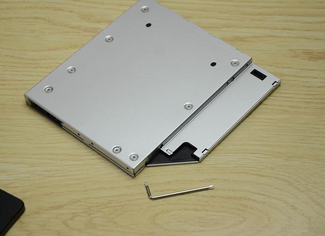 换SSD之前先去官网查了参数,这款笔记本的主板上硬盘接口为SATA3,光驱接口为SATA,所以作业时为了保证速度,要把SSD安装到主板上,把机械硬盘换到光驱位置。笔记本原光驱的厚度为9.2mm,选支架时一定要注意厚度,如果厚了会放不进去的,ssd的厚度不太要紧,因为里面原来放机械硬盘的空间比较大。