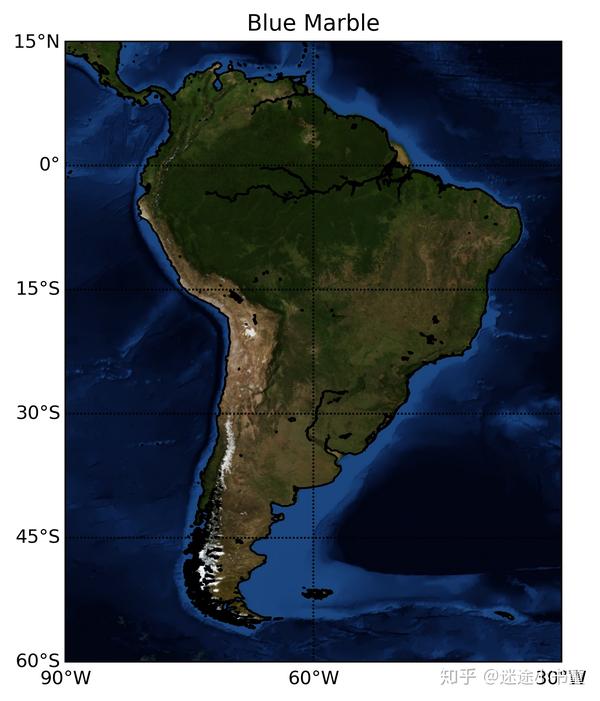 答:在basemap模块中,可通过不同函数,实现不同地图背景地图的更换。如,使用arcgisimage可显示类似谷歌卫星云图的效果,使用etopo函数可显示类似浮雕图的高程信息等。下图以类似谷歌地图的显示效果为例给出示例图: