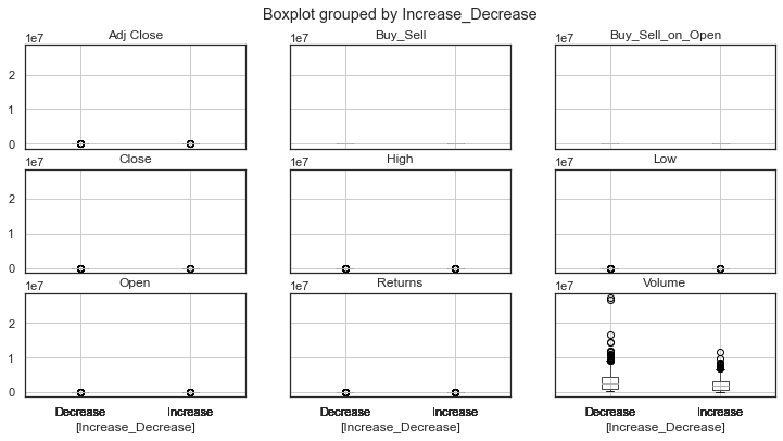 dataset.boxplot(by="Increase_Decrease", figsize=(12, 6))