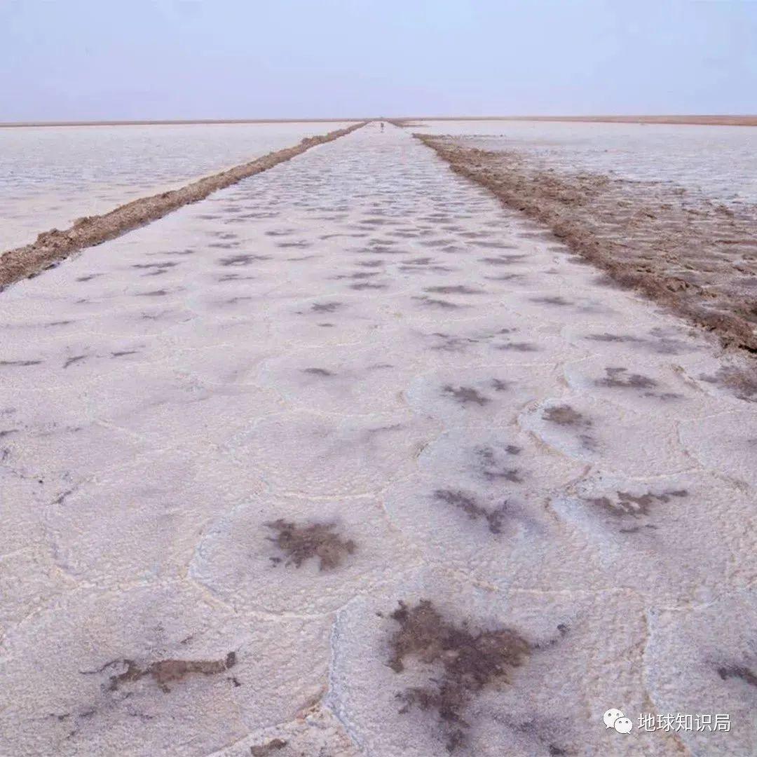 作为荒漠类型中的一种,白花花的盐漠并没有像黄灿灿的沙漠一样被人们所熟知。盐漠形成的动力学机制主要是土地的盐碱化过程。含盐的地下水沿毛细管空隙上升到地表的过程中,水分蒸发,盐分在地表积聚,导致盐碱地形成。