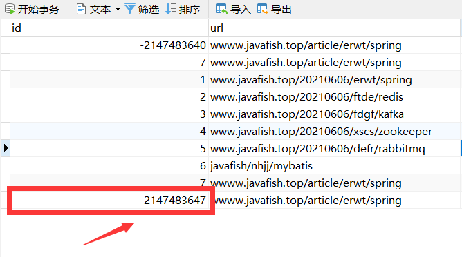 插入一个 id 为最大值 2147483647 的值,如下图所示: