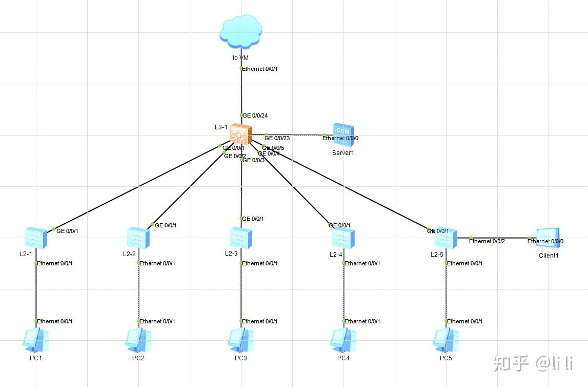 在之前网络环境的基础上,先给交换机增加上该段的地址和回程路由: