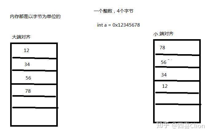 对于arm和intel这种x86构架的复杂指令CPU,整数在内存中是倒着存放的,低地址放在低位,高地址放在高位,小端对齐