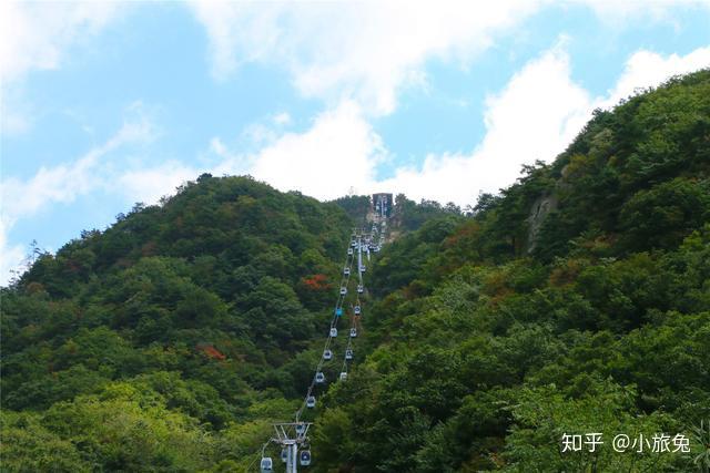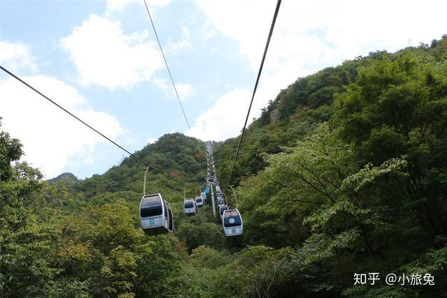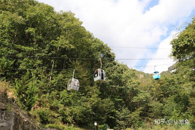 饭饱茶足,伸个懒腰,起身上山吧。林荫步道还是要感受一番的,可徒步太累,咋办?索道上、徒步下呗。买票,坐索道上山。老界岭景区的索道长约2000米,有56个吊厢,每个吊厢可以坐两个人,20分钟左右即可抵达索道上站。老界岭索道在南阳地区应该算是最大最长的了。