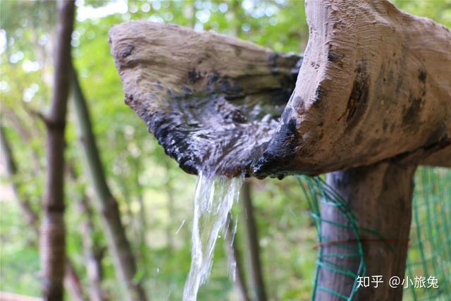 清冽甘甜的泉水从水槽流出,一节一节,从高到低,错落有致,特色十足,清脆悦耳的流水声更为这宁谧的山林增添了许多灵气。