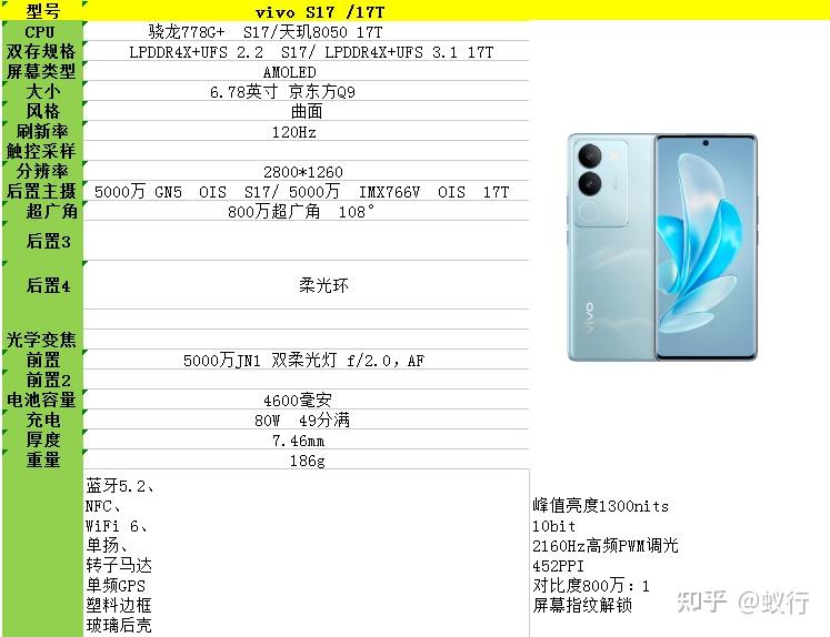 区别一,s17处理器是骁龙778+,17T是天玑8050(性能相当于天玑1300)