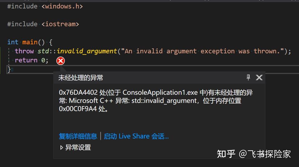 warning C4286: “std::invalid_argument”: 由基类(“std::exception”)在行 9 上捕获