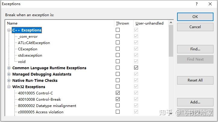 Windows下的C++异常,底层实现是Windows的结构化异常(Structured Exception Handling)。结构化异常分为两部分,一个叫做终止处理器(Termination Handlers),一个叫做异常处理器(Exception Handlers)。