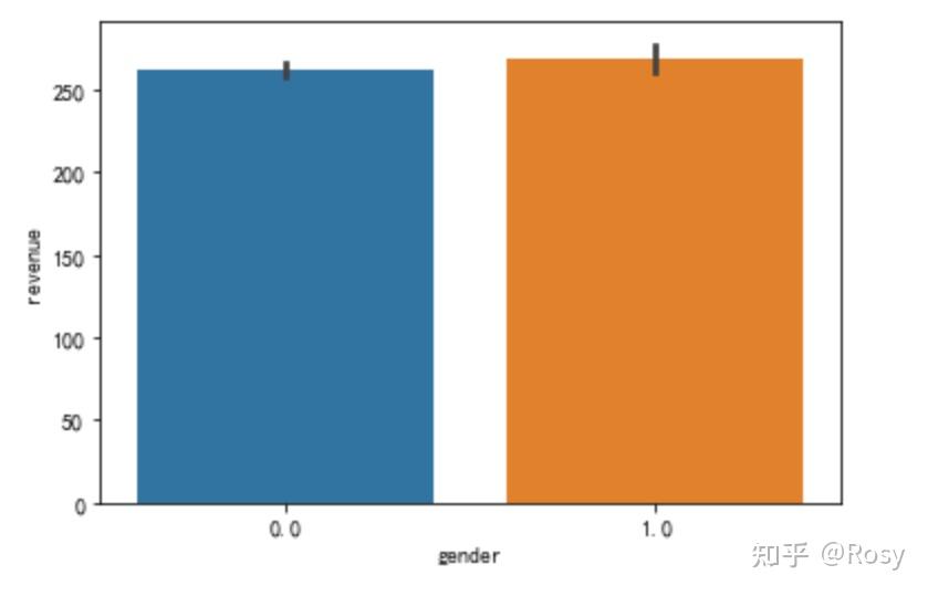 sns.barplot(x='gender',y='revenue',estimator=sum,data=df1)