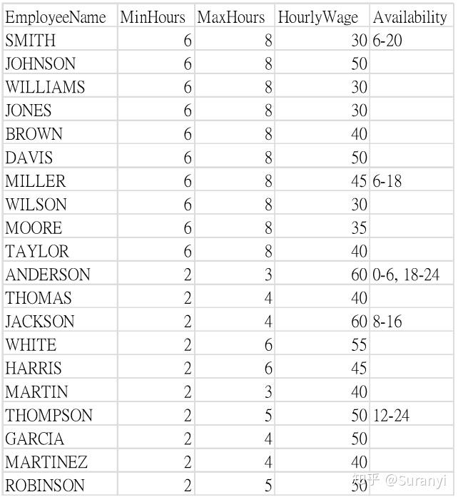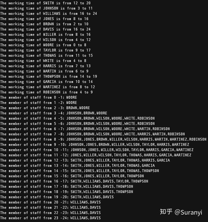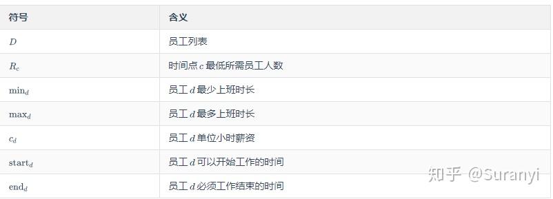# 更进一步,可以写为:MODEL.addConstrs(gurobipy.quicksum(x[d,i,j] for d in D for i in range(0, 24) for j in range(i + 1, 25) if i <= c < j) >= R[c] for c in C)