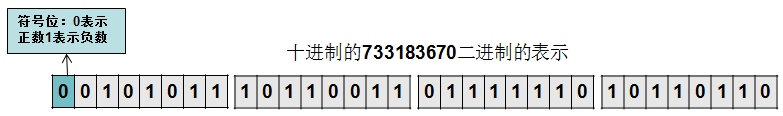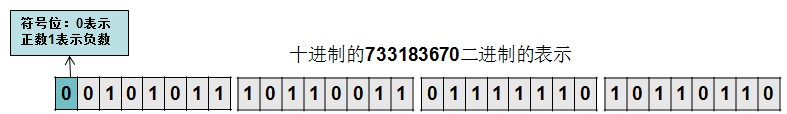 先随便定义一个int类型的数int,十进制的value = 733183670,转换成二进制在计算机中的表示如下: