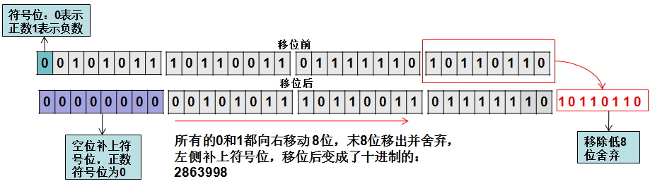 System.out.println("intValue右移8位:" + (intValue >> 8));//右移8位