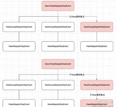 KeyEvent事件分发 与触摸事件有类似 ,都是从顶层的DecorView开始寻找消费事件的子View。不同的是,它没有过多复杂的机制,譬如事件拦截。