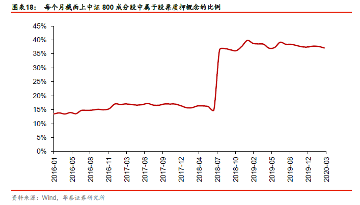图表18展示了每个月截面上中证800成分股中属于股票质押概念的比例。