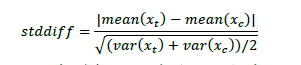 倾向性评分法要求匹配后样本的所有混淆变量在处理组和对照组达到均衡,否则后续分析会有偏差,因此需要对匹配之后的样本进行均衡性检验。目前学术界比较公认的方法是使用标准化差值直观反映匹配前后的组间差异(见参考文献[6])。比如,混淆变量x的标准化差计算公式为