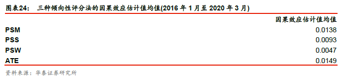 风险提示:因果推断所得结论是对历史规律的总结,若未来规律发生变化,结论存在失效的风险。倾向性评分法对于因果关系的建模存在过度简化的风险。倾向性评分法中,混淆变量的选取会对因果效应估计结果造成较大影响,应谨慎对待。