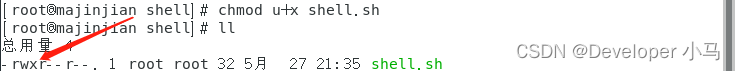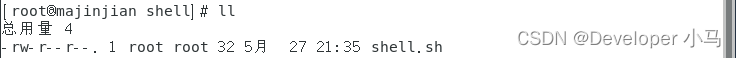(3)这个时候查看 shell.sh 的权限,是没有可执行权限 x 的;