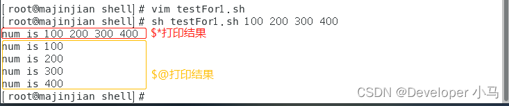运行结果如下,这也印证了 $*(将所有参数看成一个整体) 和 $@(将参数区别对待) 的区别;