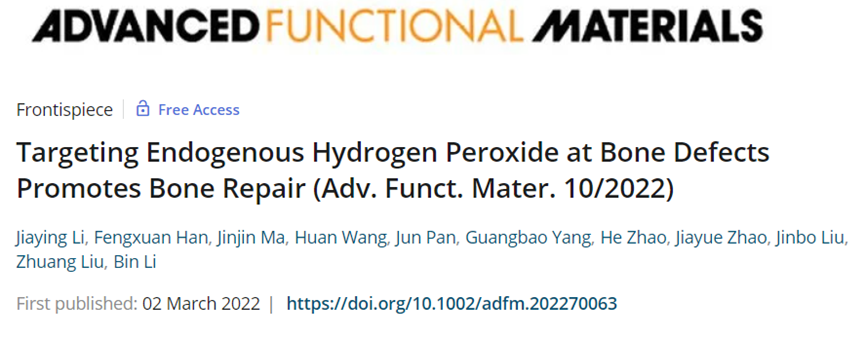 相关论文以题为 Targeting Endogenous Hydrogen Peroxide at Bone Defects Promotes Bone Repair 发表在《 Advanced Functional Materials 》上。 通讯作者 是 苏州大学韩凤选副研究员 , 刘庄教授 ,和 李斌教授。