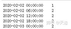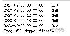 创建一个时间序列,起始日期是‘2020-02-02’,一共2天,每天对应的数值分别是1和2,通过升采样处理为每6个小时统计一次数据,空值以不同的方式填