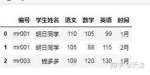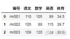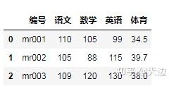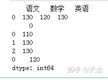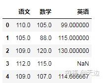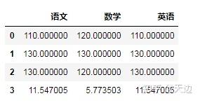 #增加一行数据(“语文”、“数学”、“英语”的平均成绩,忽略索引)