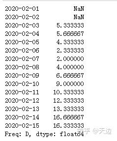 # min_periods :每个窗口最少包含的观测值数量,小于这个值的窗口结果为NA。值可以是int,默认值为None。