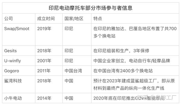 为了降低购车成本、提高电摩的续航能力,做换电模式是目前业内的最优解。现在在做换电站的品牌并不多,比较有代表性的品牌有印尼本土品牌Swap、Gesits等,以及来自中国台湾的品牌Gogoro,国内正在布局东南亚市场的鲨湾科技也在规划布局换电站。