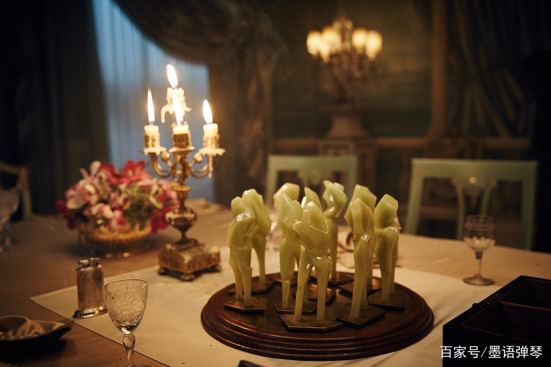 餐桌上有十个小瓷像。从第一天晚上开始的几天时间里,每天都有人按着儿歌里述说的方式死去,每死一个人,餐桌上的瓷瓶就会少掉一个。