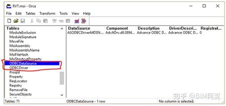 3. 使用Orca打开 RVT.msi文件中,搜索 ODBCInstallDriver 和删除如下所示内容