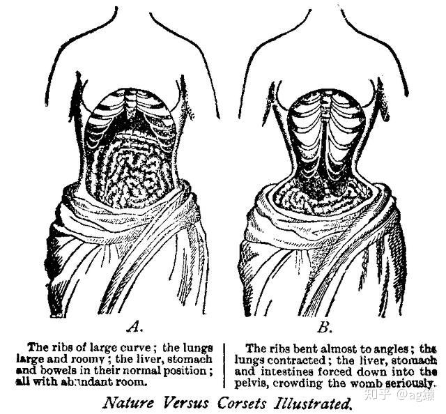 长期穿着紧身胸衣除了会导致呼吸、进食困难、器官变形外,甚至还会导致穿戴者过早去世。不过为了追求时尚,获得男人们的认可,女士们还是甘于忍受痛苦,甚至从孩子做起,从小给女孩们穿上紧身胸衣。