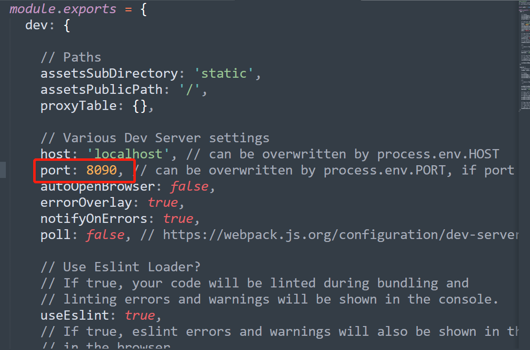 打开geoserver_vue_leaflet\config\index.js,将port由8080,修改为8090。