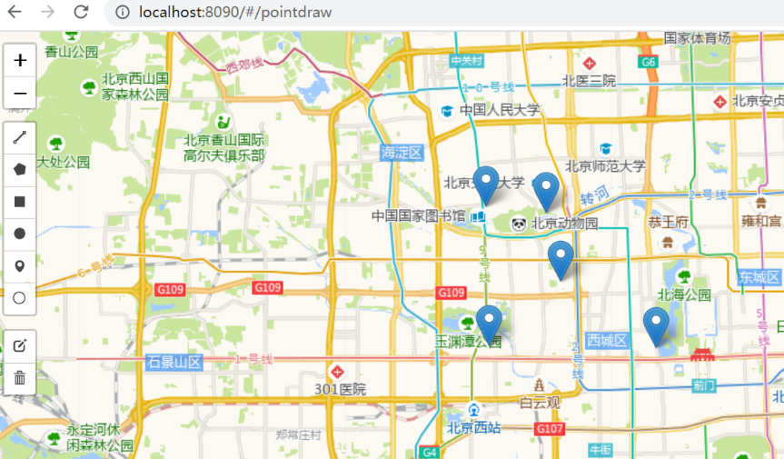 访问:http://localhost:8090/#/pointdraw,随便画几个点,效果如下。
