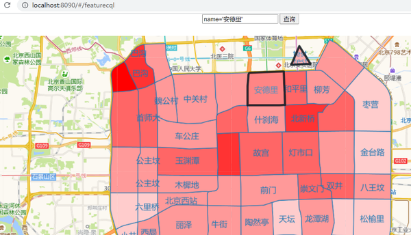 访问访问http://localhost:8090/#/featurecql,输入查询条件,点击查询按钮,效果如下: