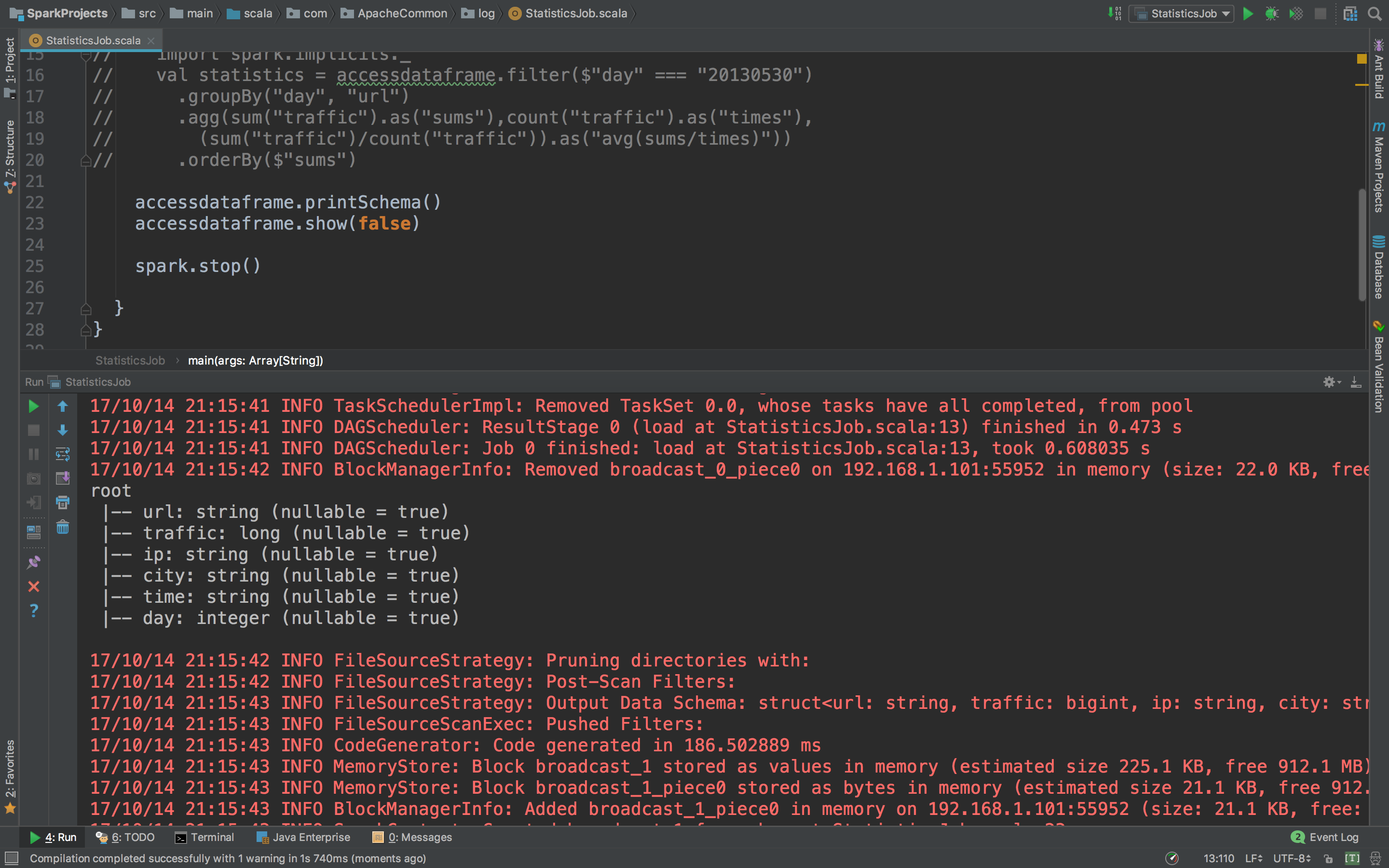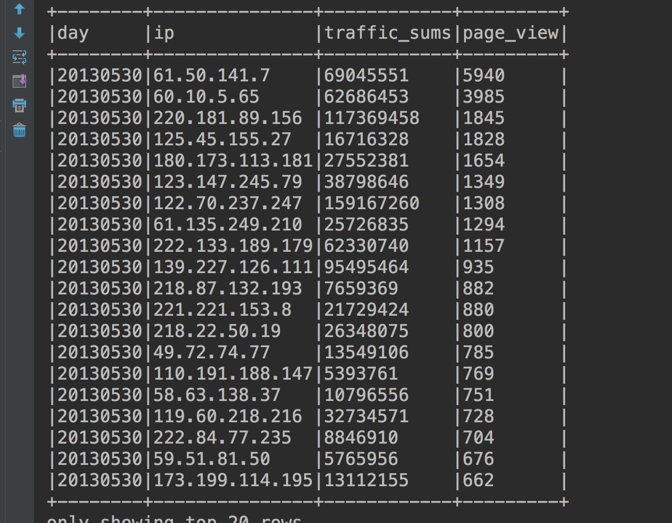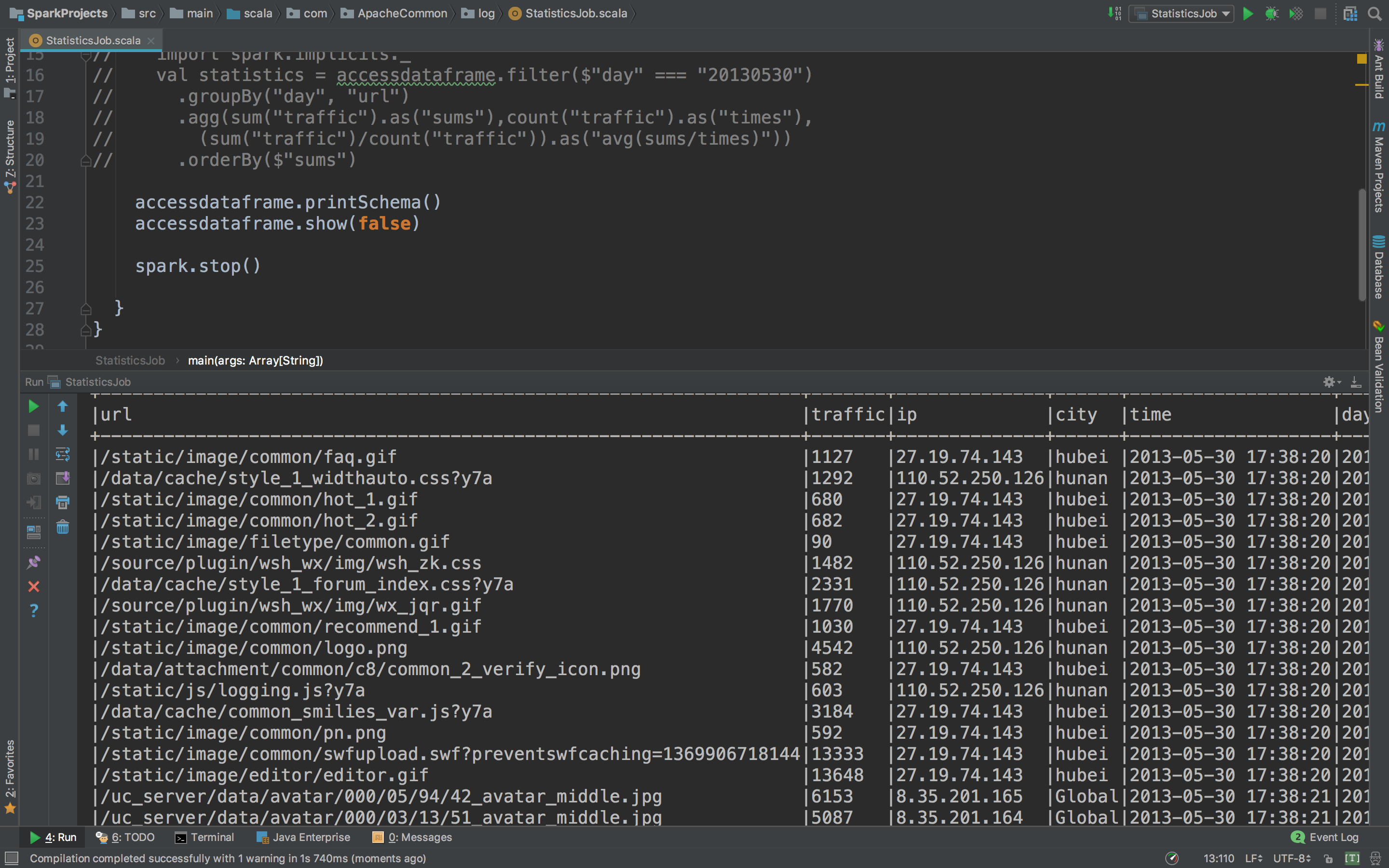 val ip_statistics = accessdataframe.filter($"day" === "20130530")