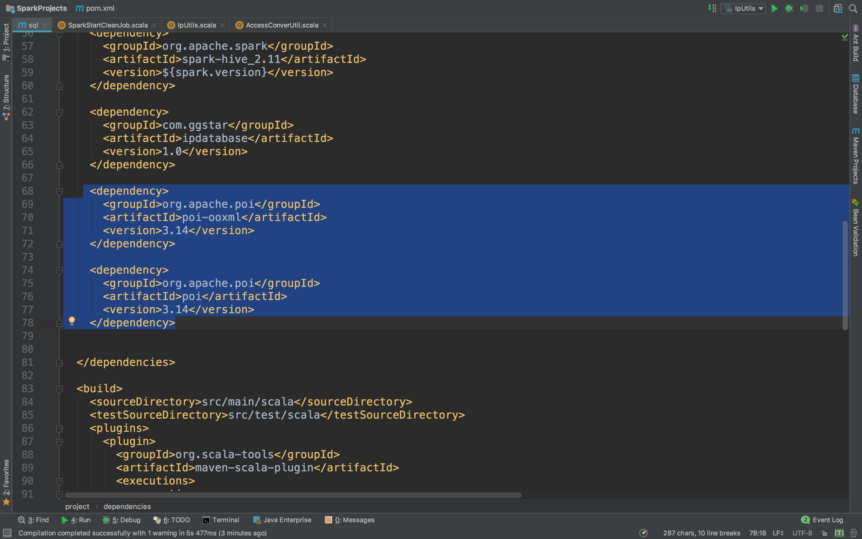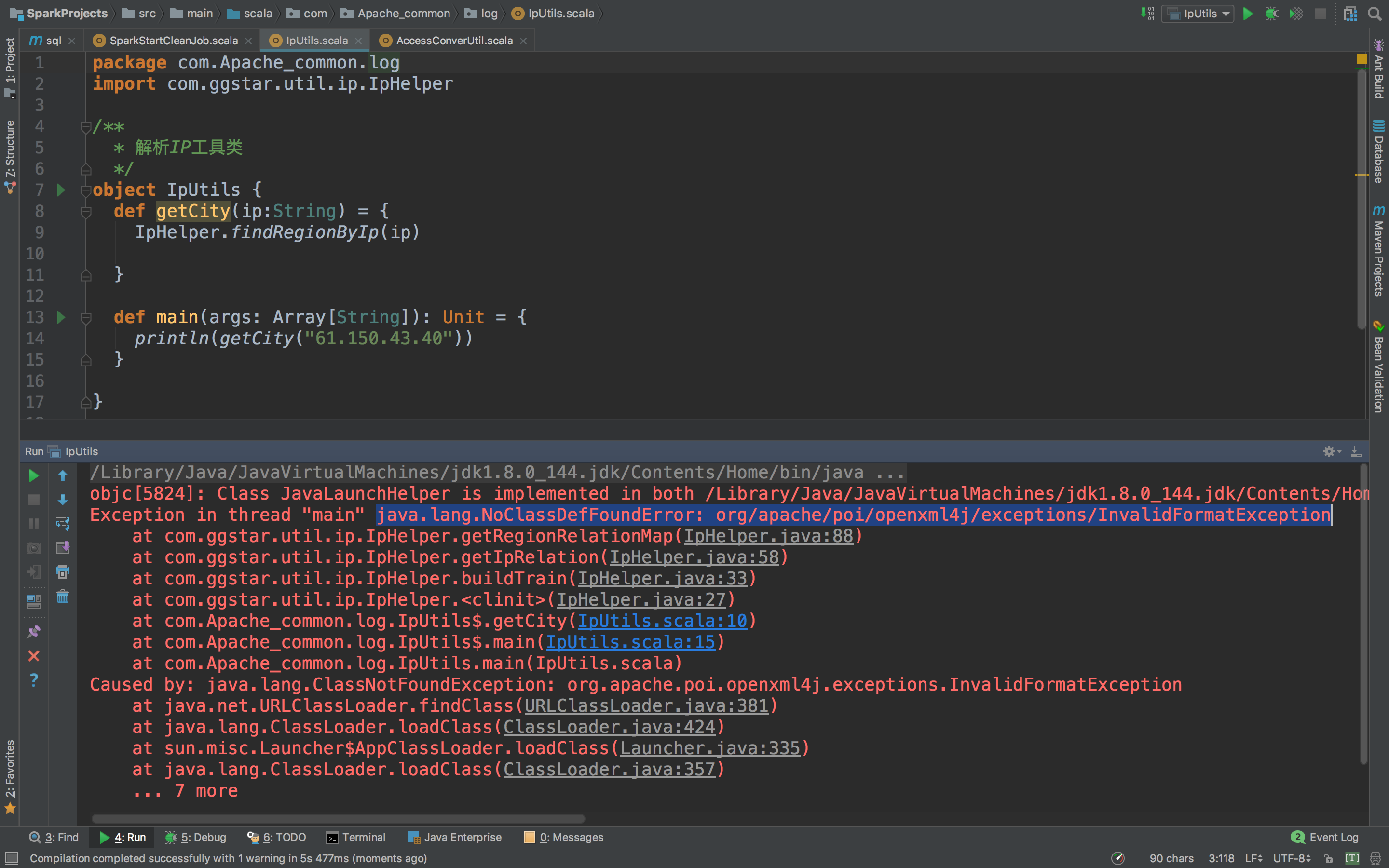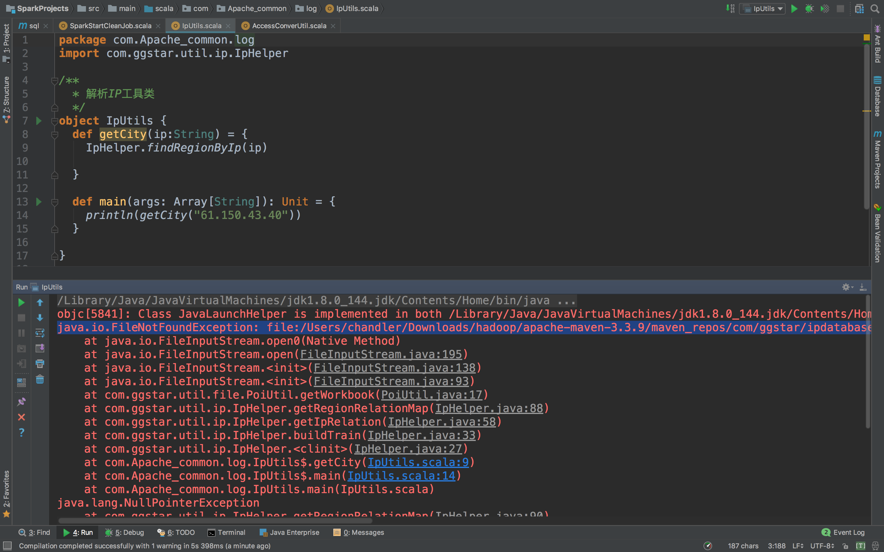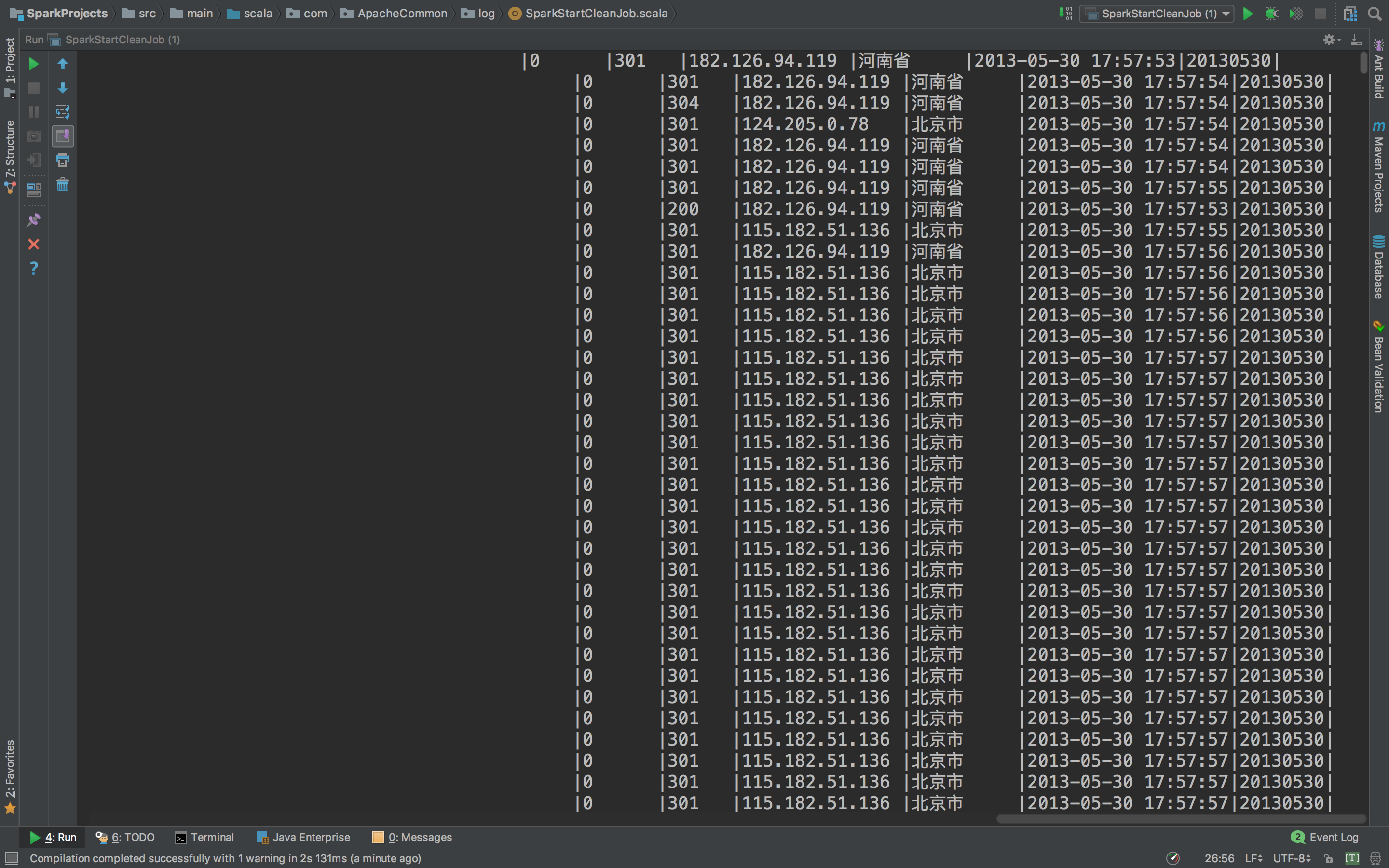 val ip_statistics = accessdataframe.filter($"day" === "20130530")